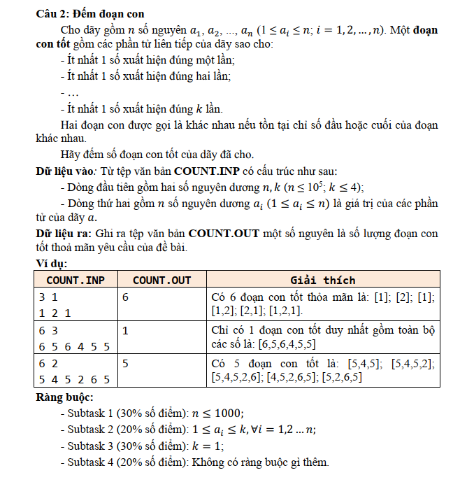 Khối 11 - Bài 2 - Đếm đoạn con